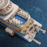 Wellness takes precedence with a two-deck, 1,190-square-metre spa – the largest in its category – featuring eight ocean-facing treatment suites. Four distinct restaurants span Mediterranean to Japanese washoku, with in-suite dining available at any hour. Two helipads and six tenders ensure seamless transitions between yacht and shore.