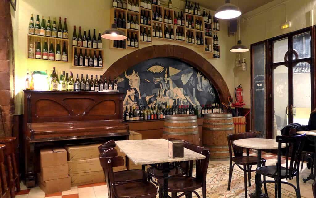 Directly opposite the gorgeous Santa Maria del Mar church, this traditional wine bar may heave with sightseers in peak season, but don’t let that deter you from its mighty wine list. With more than 20 wines by the glass, from €2 table whites to special pours at €50, this is one for wine nerds and explorers alike. There’s a focus on natural wines and local wines, with plenty from within Catalonia – including the well-known regions of Penedès, Priorat and Empordà — and wider Spain, as well as Hungary and Germany.