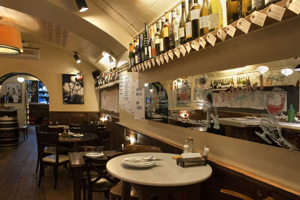 Pair your glass with a savoury bite from the menu that ranges from oysters and cured fish to pork cheeks in sherry sauce. If sitting outside feels busy, grab a seat at the interior bar, or head upstairs for a second-storey peek into the basilica.