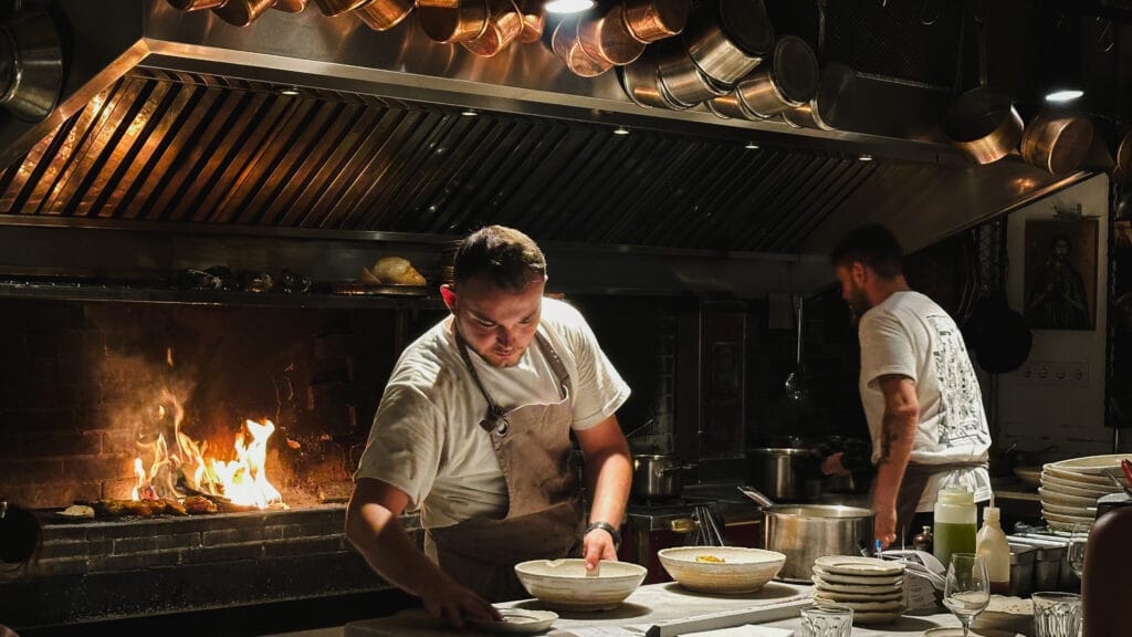 Located in the charming heart of Pangrati, Akra offers refined, plant-forward dining, deeply rooted in Greece’s culinary traditions, from local, seasonal ingredients to classic flavours reimagined with modern precision. This is refined, plant-forward dining by one of Greece’s most exciting chefs, Giannis Loukakis of Mourga and pastry maestro Spiros Pediaditakis of two-Michelin-starred Spondi, Akra blends technical precision with a relaxed neighbourhood energy. At the front of the space, a bakery extends the experience beyond lunch and dinner, with ovens placed around the room filling the air with the aroma of freshly baked bread and pastries, creating a sensorial backdrop to the meal.