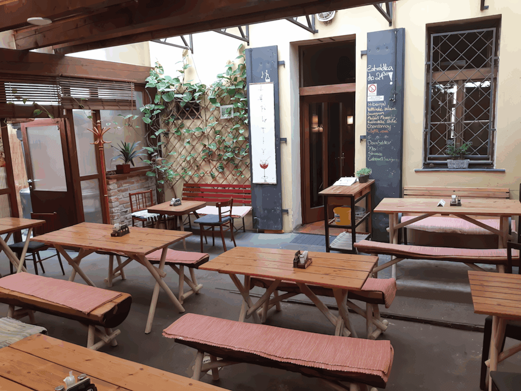 Hidden within the unlikely setting of a communist-era shopping gallery, this tiny wine haven feels like stumbling upon a secret society of wine lovers. The space is delightfully cramped – barely bigger than a living room – but that’s precisely its charm. Here, glasses of well-chosen Moravian wines flow at surprisingly gentle prices, while impromptu music sessions often break out among the regulars.