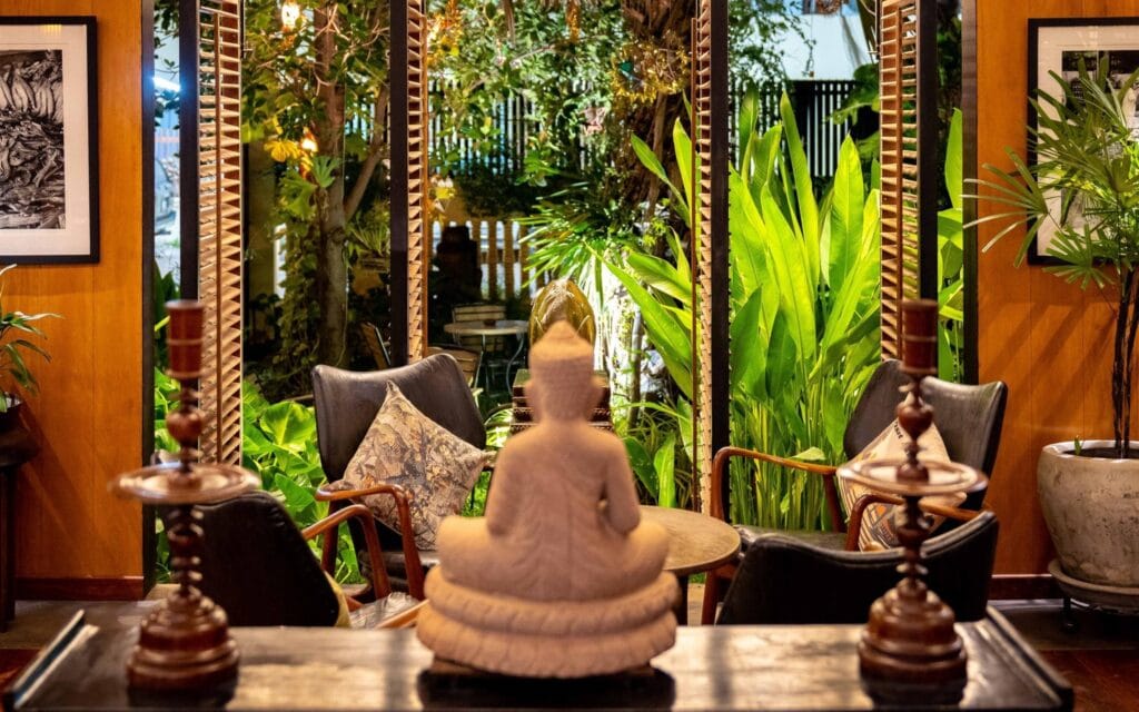 Tucked away from Pub Street, Chanrey Tree sits riverside in the central strip of Siem Reap town in a spacious Khmer‑style house surrounded by greenery. Its modern Khmer cuisine hits a sweet‑spicy‑salty equilibrium. Chef Seng Sopheak’s menu respects tradition but tweaks textures with highlights being the peanut and lime-dressed banana-blossom salad and a slow-braised local beef dish that melts at the prod of a spoon. The lush South East Asian design aesthetic and ambience is elegant yet welcoming, with polished concrete, glowing lanterns, flora and careful service. Today, the Chanrey Tree has become of the most popular high-end spots in town, so booking is highly recommended.